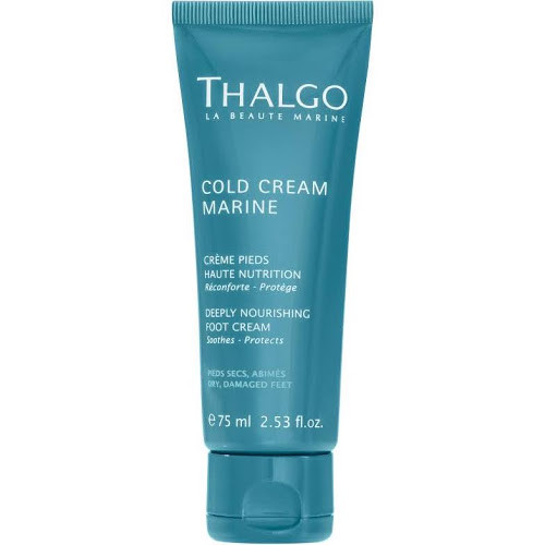 Thalgo Deeply Nourishing Foot Cream treats and protects dry feet. It is formulated with a cold cream complex containing algae oil to replenish dehydrated skin, algae wax to soothe, and sève bleu from the oceans to repair damaged skin. Skin is left feeling nourished and silky smooth.