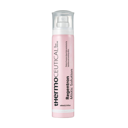 ThermoCeutical Regentron Mistic Solution is a lightweight aerosol facial mist designed to deliver a perfectly diffused veil of hydration to the skin. This essence-type hydrating mist can be used throughout the day, even over makeup, to refresh, soothe, and maintain moisture balance. Infused with Rosa Centifolia Flower Water, it helps calm visible redness and revive tired, stressed skin for a healthy, radiant appearance.